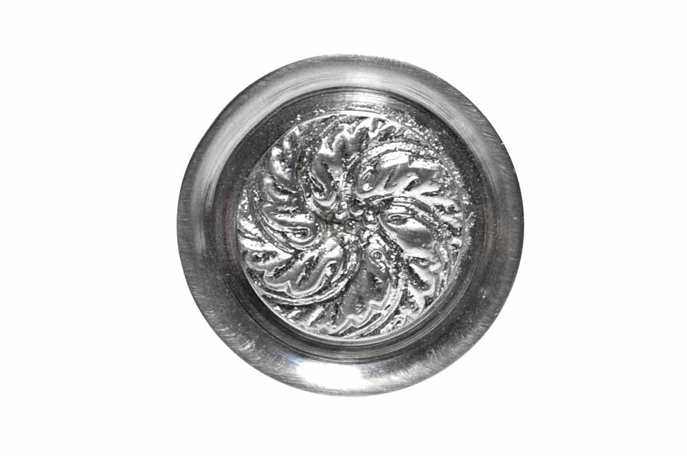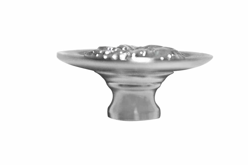 This knob measures 1 1/3 inches in diameter with a projection of 1 1/4 inch. Comes complete with mounting hardware. Available in an elegant Satin Nickel finish. The average lead time for this cabinet knob is approximately 1 to 2 business days.