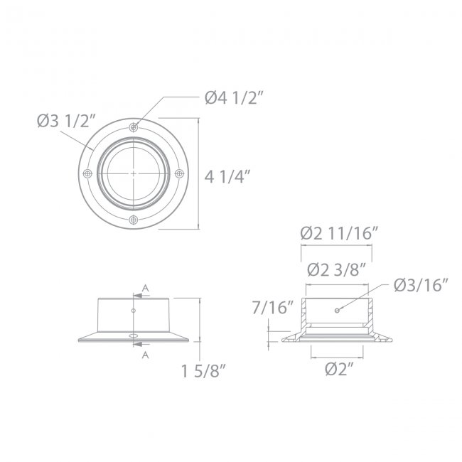 Concrete Pour Kit for WAC Landscape Lighting 2in Indicator Light PVC constructed concrete pour kit for WAC Landscape Lighting 2" Inground Indicator Lights. Light fits perfectly snug into pour kit. Includes a dense foam cap to prevent concrete from entering. Five .5in treaded holes for wiring. PVC Construction. Includes holes for wiring. Intended to be used with WAC Landscape Lighting 2" Inground indicator light. Includes a dense foam cap to prevent concrete from entering. For installation in concrete. Standards: UL, cUL & IP65 Rated for Wet Locations.