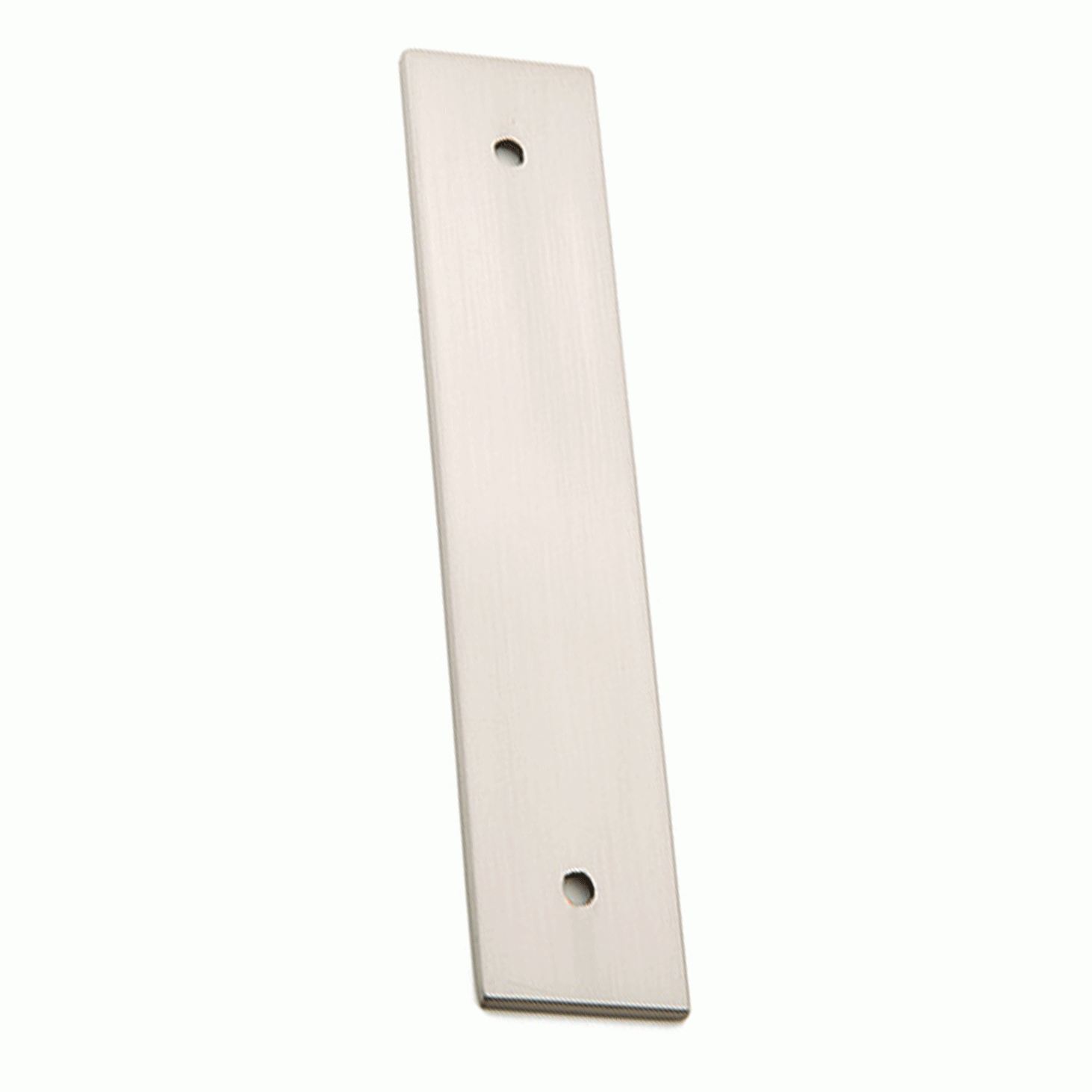 5 1/4 Inch (4 Inch c-c) Solid Brass Art Deco Rectangular Back Plate (Brushed Nickel Finish) - This back plate is a perfect compliment to any of the art deco cabinet pull. Measures 5 1/4 inches overall with a 4 inch center to center mounting distance. Comes complete with mounting hardware.