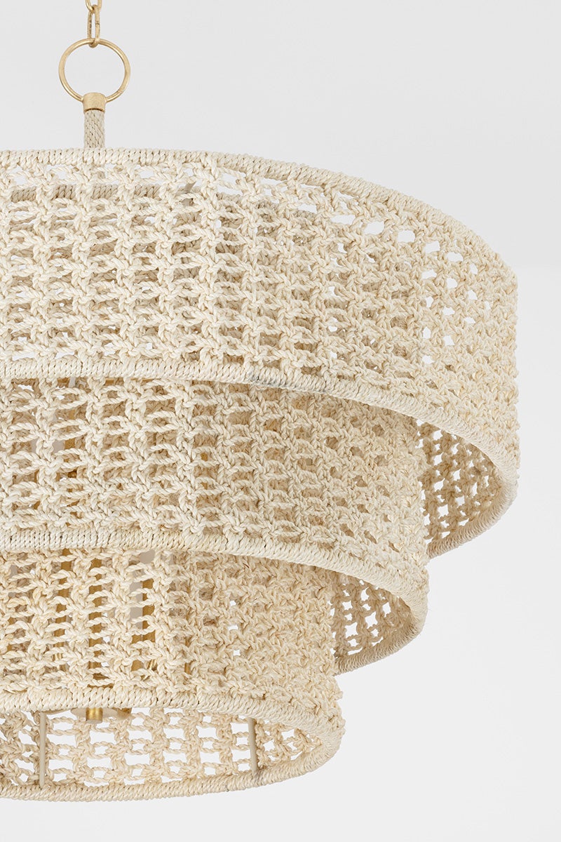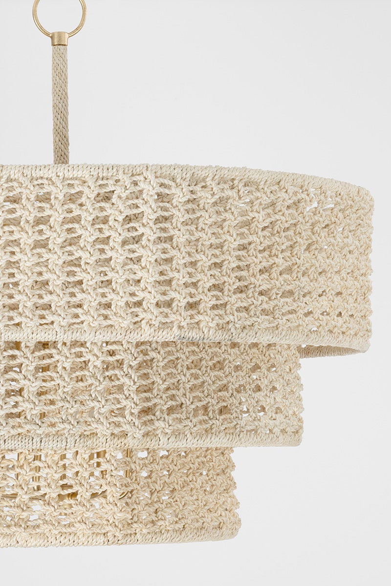 The Yorkhill chandelier by Hudson Valley Lighting is a stunning addition for those looking to enhance their space with elegant lighting. This fixture features a unique diameter of 32.00 inches and a height of 29.50 inches, accommodating up to six E12 candelabra base bulbs (not included) with a maximum wattage of 8.00W each. It showcases a sophisticated Abaca shade, available in a delightful Vintage Gold Leaf (VGL) finish. With an electrical rating of UL Damp, this chandelier is ideal for a variety of indoor settings where moisture may be present.