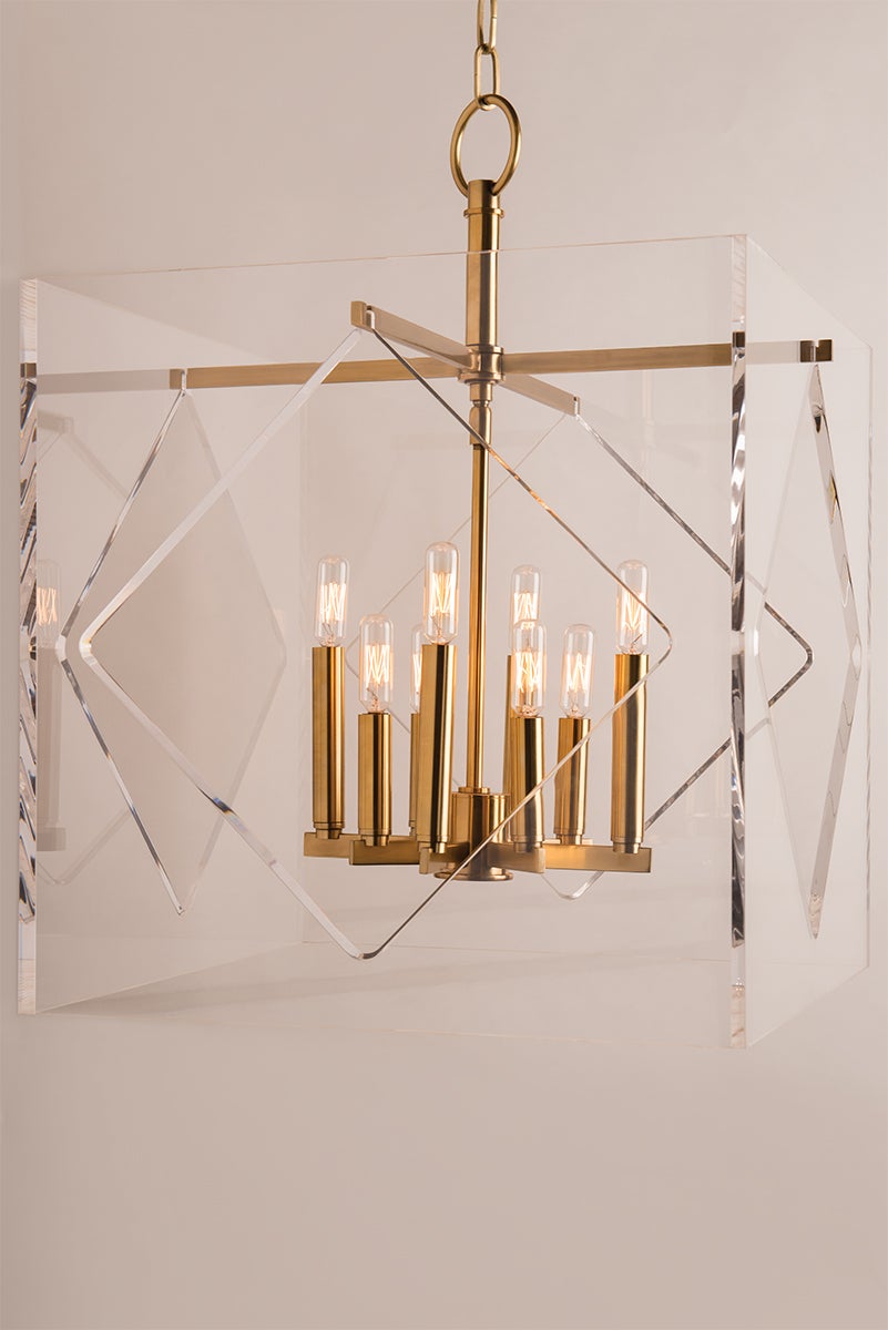 The Travis Ceiling Light by Hudson Valley Lighting combines elegance and functionality, making it ideal for both modern and traditional spaces. This exquisite fixture features a clear acrylic shade and accommodates eight E12 candelabra base bulbs (not included), each with a maximum wattage of 60W. With dimensions of 16.00 inches in diameter and 21.50 inches in height, it offers a substantial presence. The light is available in two luxurious finish options: Aged Brass and Polished Nickel, elevating your decor while being UL Damp rated for versatility in various environments.