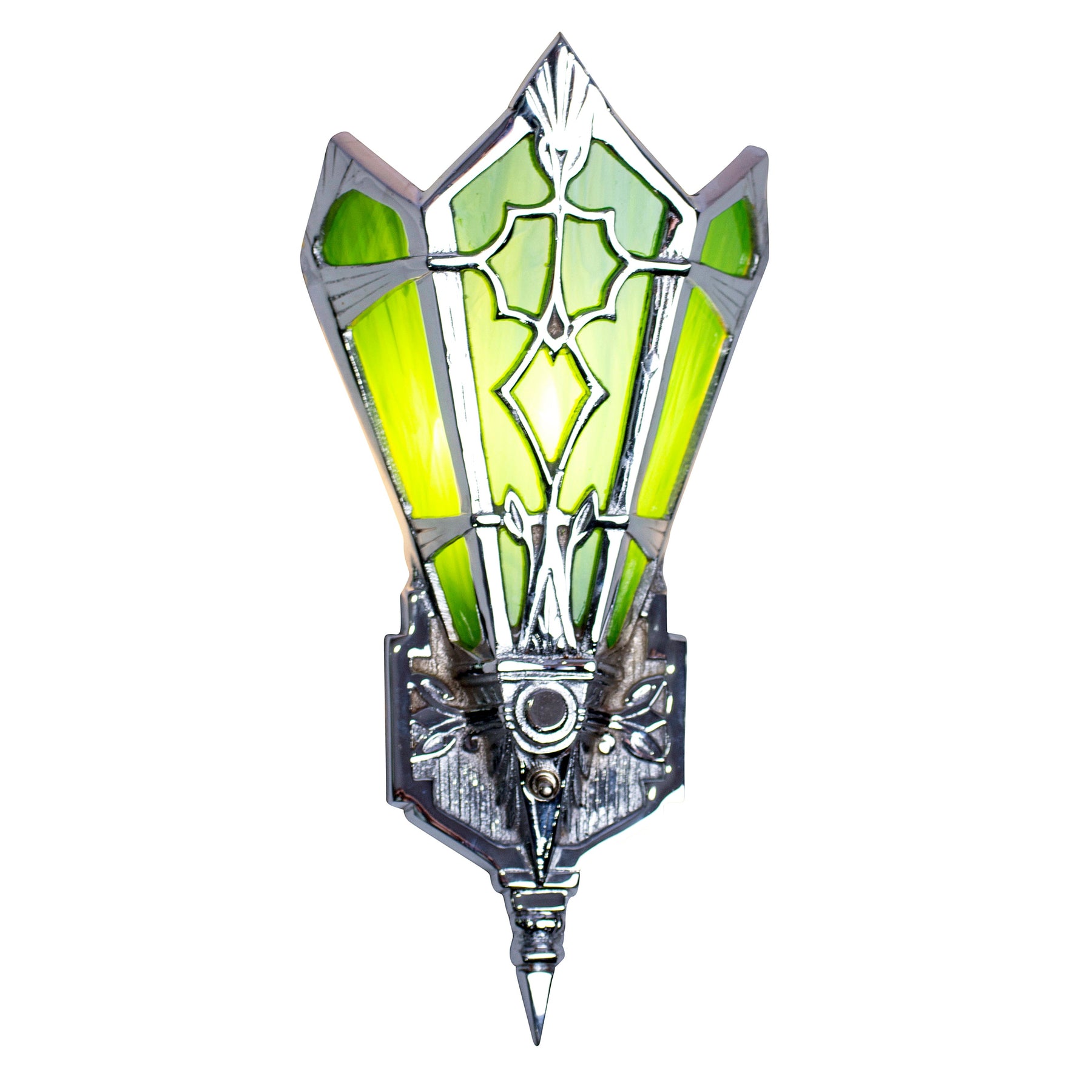 14 Inch Art Deco Stained Glass Shade Deco Green Wall Sconce