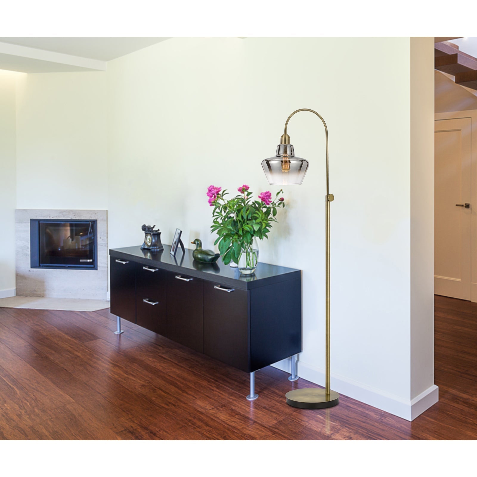 40W DUXBURY METAL ARC FLOOR LAMP WITH ELECTORAL PLATED SMOKED GLASS SHADE
