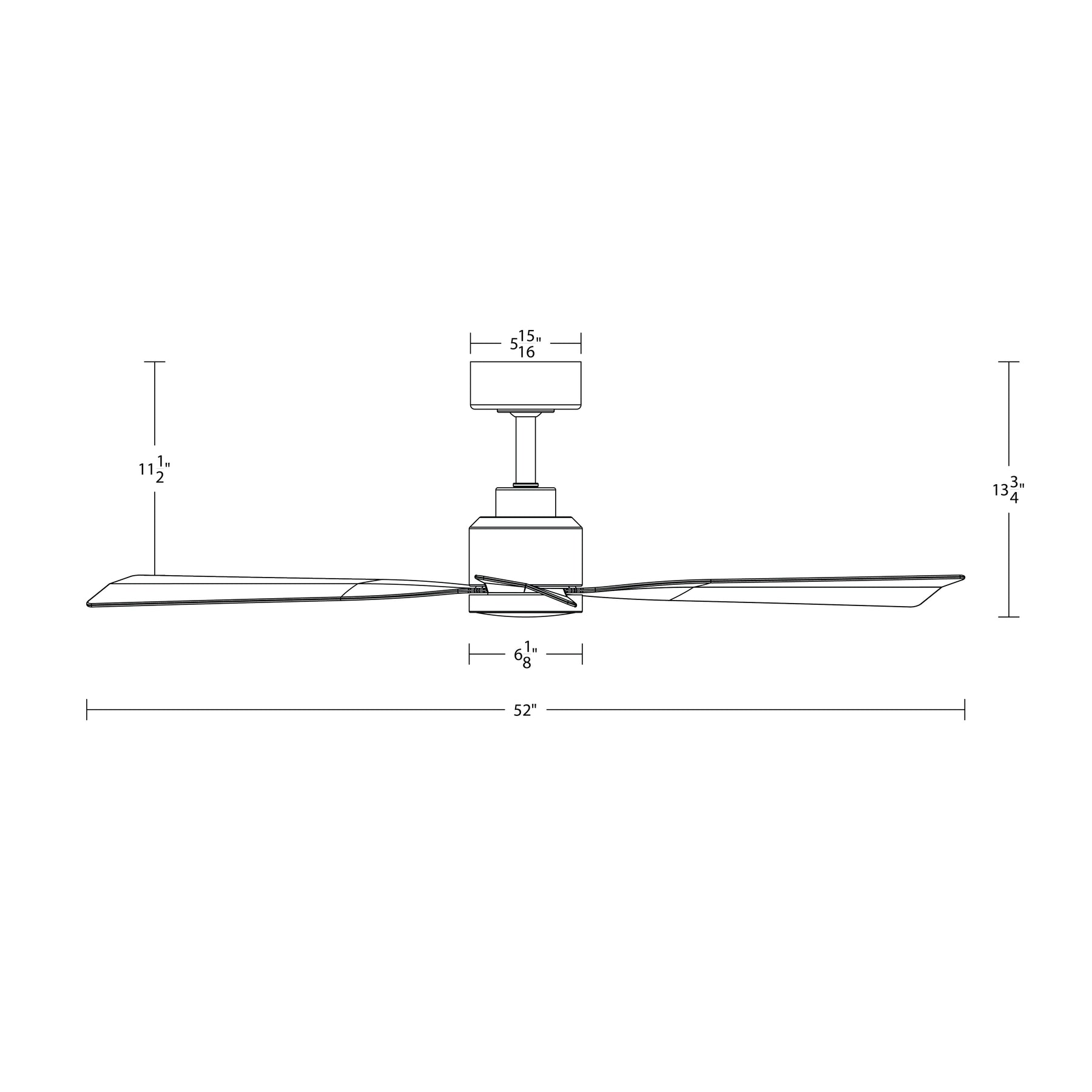 Clean Indoor or Outdoor 3-Blade 52in Smart Ceiling Fan in Matte Black with 3000K LED Light Kit and Remote Control A smart fan with minimalist appeal. It perfectly suits a range of design styles without overpowering. Convenient wall and remote control options provide flexibility and ease of use, while a whisper-quiet and energy-efficient DC motor powers the ABS blades. Make it a smart fan by downloading the WAC Lighting app to control fan speed, use smart features like breeze mode, adaptive learning, create groups, and reduce energy costs. WAC Smart Fans can be controlled from the WAC Smart Fan app, enabling smart features and full control of your fan from an iOS or Android device. Download the app to pair with the smart home tech you know and love, including Google Assistant, Amazon Alexa, Samsung Smart Things, Ecobee, Control4, and Josh AI. Coming Soon: Savant, Lutron Homeworks, and Nest. The WAC Smart Fan iOS or Android app can sync with your ceiling fan to control fan speed, use smart features like breeze mode, adaptive learning, create groups, and reduce energy costs. Battery operated Bluetooth remote control with wall cradle is included (Part # RC20-WT). An optional Bluetooth hardwired wall control is sold separately (Part# WC20-WT). Wall and remote control use Bluetooth for improved range and can control an unlimited amount of fans within range. WAC Smart Fans are made with incredibly efficient and completely silent DC motors and are up to 70% more efficient than traditional fans. Every fan is factory-balanced and sound tested to ensure each fan will never wobble, rattle or click. Order Accordingly: model # F-003L includes a replaceable LED luminaire powered by WAC Lighting with smooth and continuous brightness control. Model # F-001 does not include the LED luminaire. Standards: UL & cUL Wet Location Listed for indoor or outdoor applications. Energy Star Certified for energy efficiency. Can be installed on slope ceilings up to a 32 degree slope (SKU SC-FINISH Slope Ceiling Kit available for 30-45 degrees). Includes a 6in Downrod. Additional downrod lengths sold separately (SKU DR-FINISH).