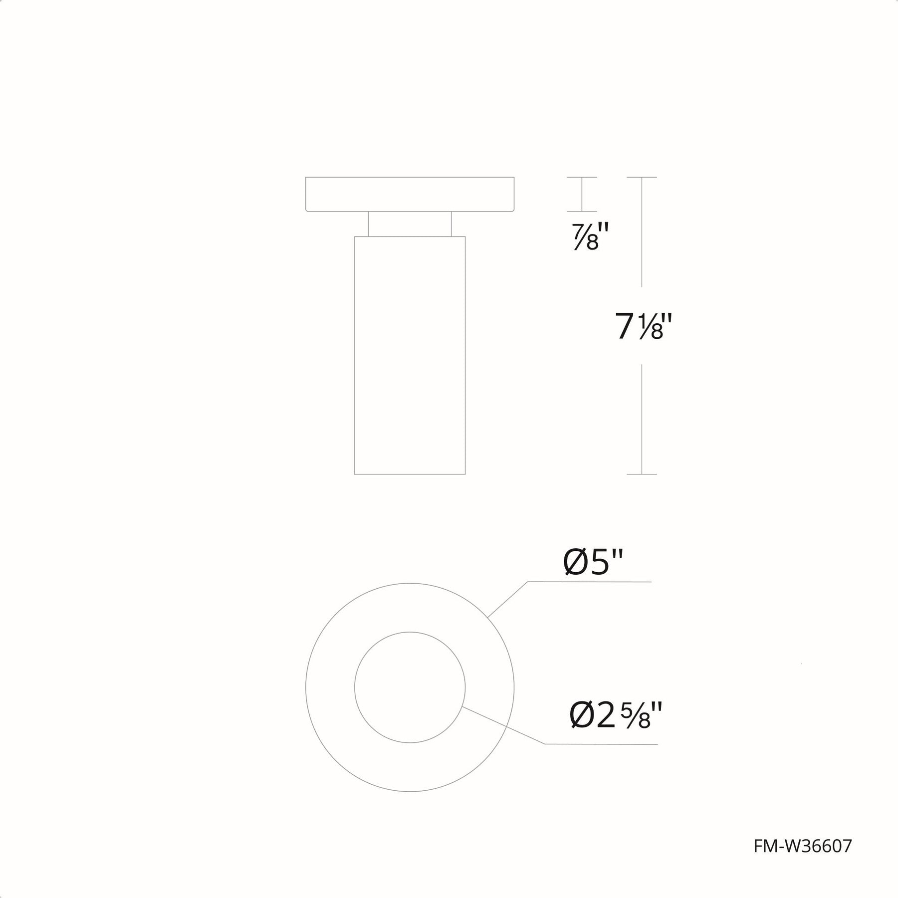 Caliber 5in LED Flush Mount 3000K in Black. Light projection tuned with precision. The Caliber outdoor ceiling mount joins a family of wall lights and a single pendant. With cylindrical aluminum body construction and acrylic diffuser, features a clear downward beam of light. Caliber is wet location listed - it can be used indoor or outdoor. This fixture can be mounted only on the ceiling. Universal Input Voltage Driver (120V-240V-277V) concealed in fixture. Smooth and continuous dimming with electronic low voltage 0-10V, ELV,TRIAC dimmer options. High Powered Replaceable LED Module CRI: 90, Rated Hours: 50000, Color Temp: 3000K Standards: ETL & cETL UL 1598 listed with IP65 rating for Wet Locations. CEC Title 24 compliant.