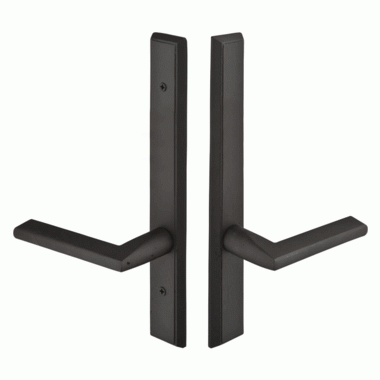 Solid Brass Rectangular Style Dummy Pair Multi Point Lock Trim (Matte Black Finish) - The rectangular shaped lock trim set from Emtek includes a smooth matte black finish. Measures 1 1/2 inches wide by 11 inches tall with a center to center hole spacing of 3 5/8 inches. Sold as a complete set, which includes plates, handles and cylinder. Multi point mortise lock box is not included. Trims only.[/description]