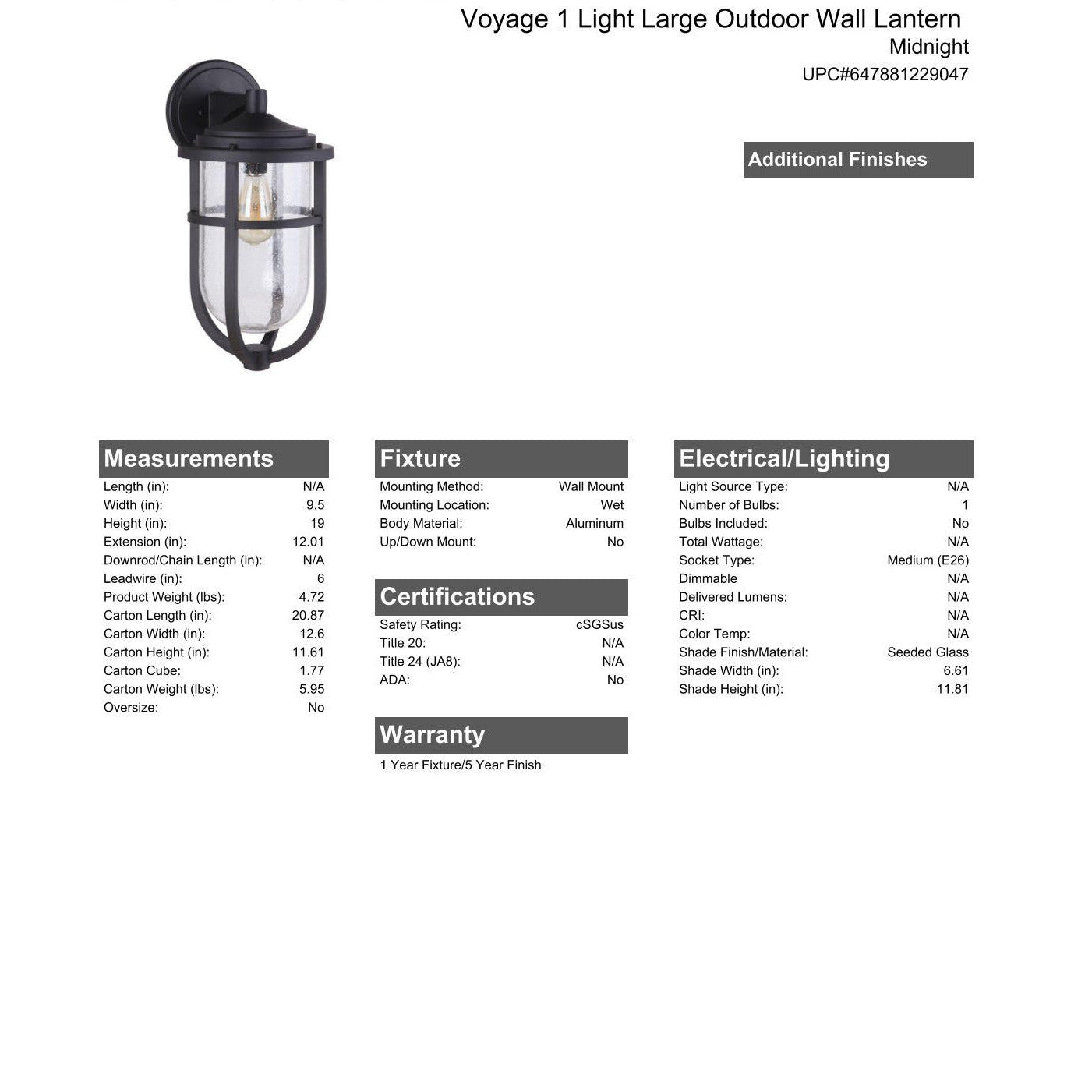 Voyage 1 Light Large Outdoor Wall Lantern in Midnight