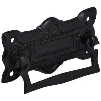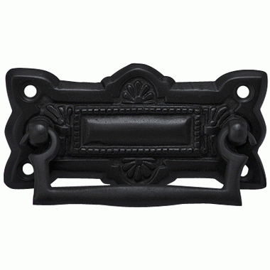 Measures 3 3/4 inches wide and 2 inches tall. Front mounting with four wood screws (included). Comes complete with mounting hardware. This product comes as an unlacquered natural brass and it will patina over time. A high strength lacquer coating is available upon request. Available in several finishes - and a coordinating knob is also available. This item usually ships in 1 to 2 business days.