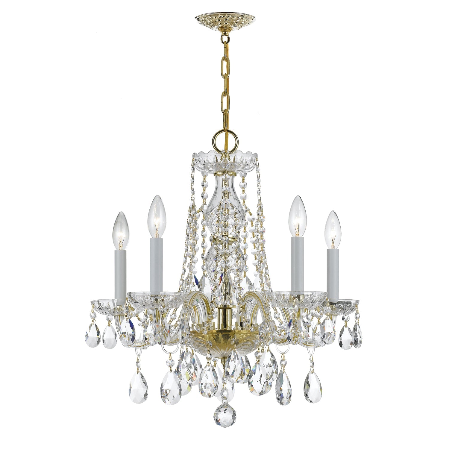 Traditional Crystal 5 Light Hand Cut Crystal Polished Brass Chandelier Crystorama