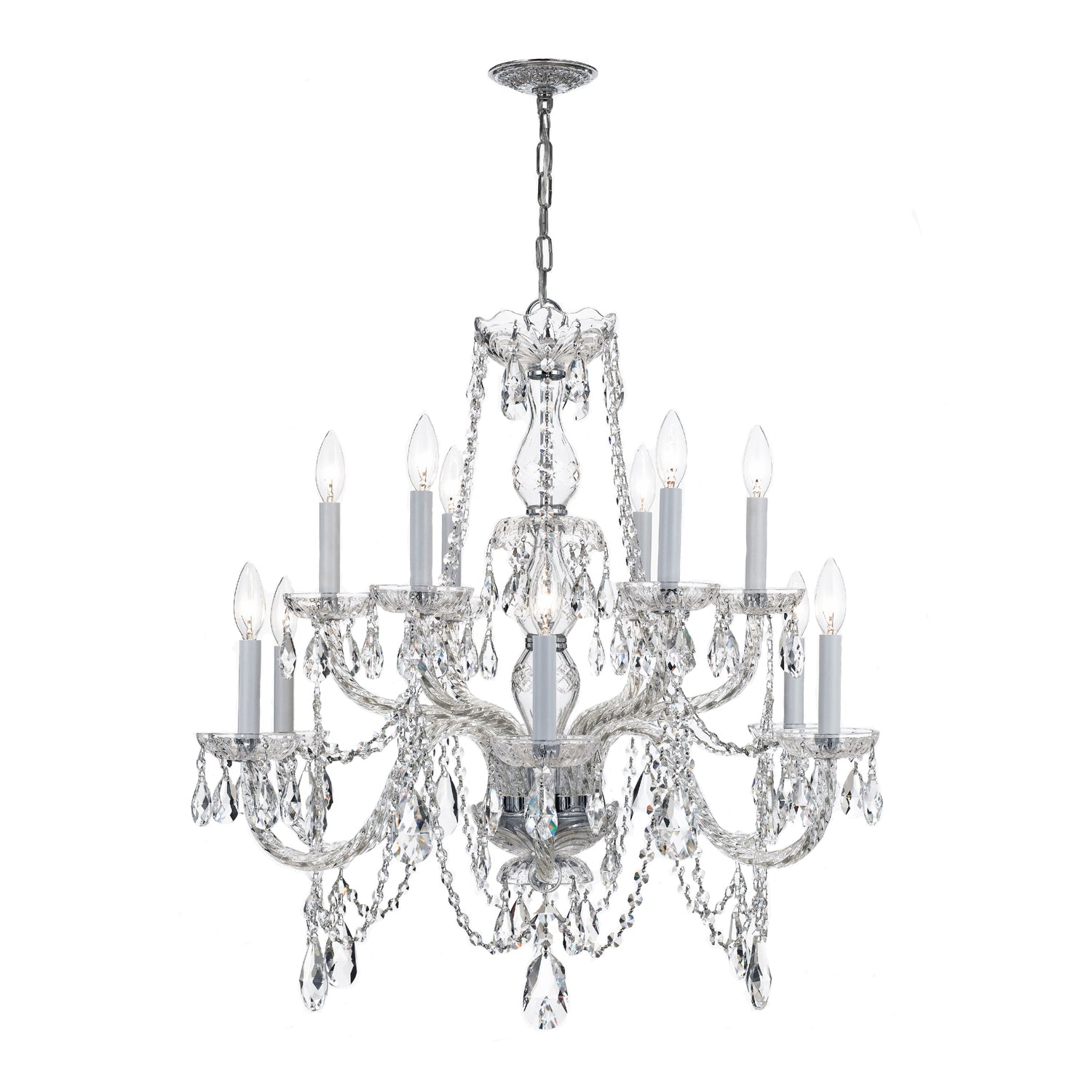 Traditional Crystal 12 Light Swarovski Strass Crystal Polished Chrome Chandelier