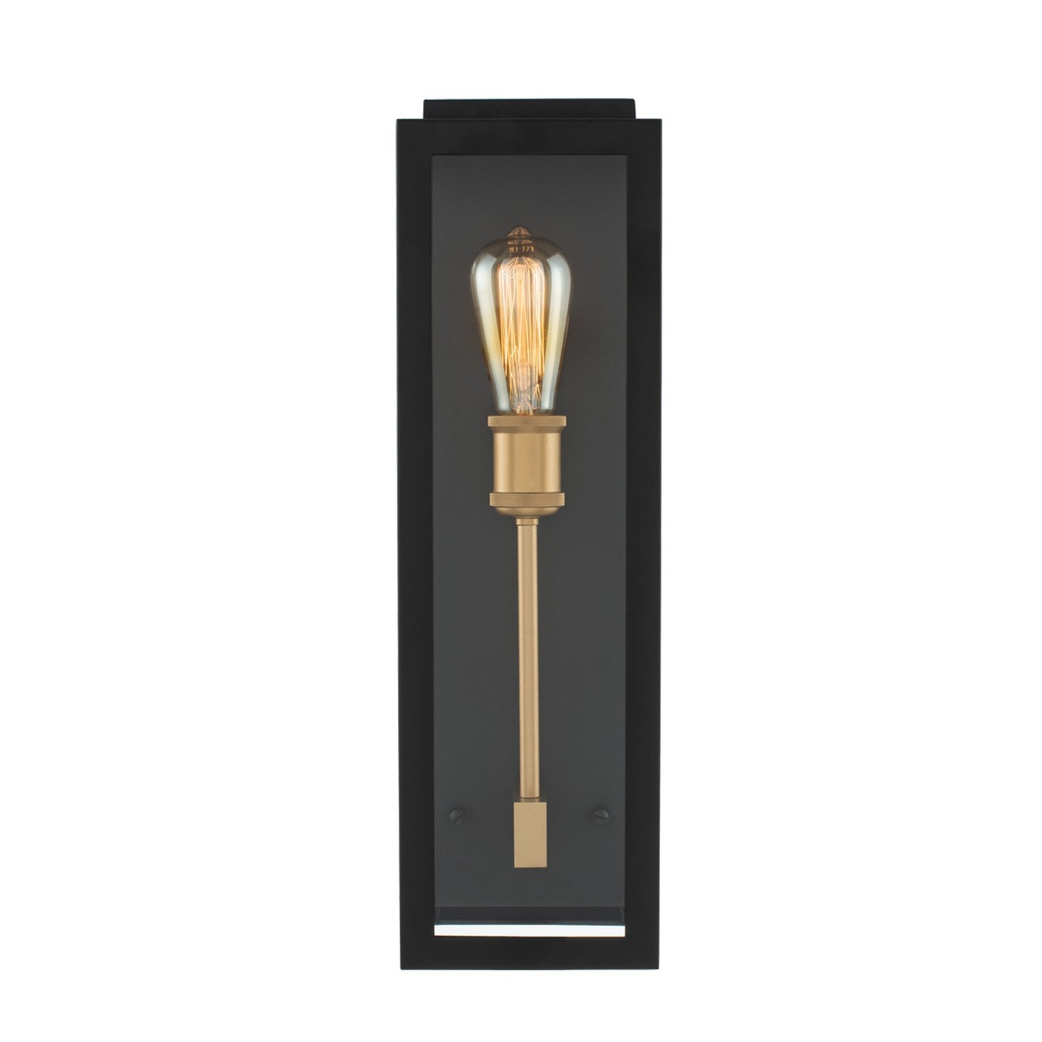The Ashland Small Wall Sconce in Matte Black with Sanded Gold is a stunning addition for those desiring a contemporary lighting solution with an industrial flair. This elegant sconce requires one E26 medium base bulb (not included) with a maximum wattage of 40W. With dimensions of 6 inches in width, 20 inches in height, and an extension of 5 inches, it is a perfect fit for various outdoor settings. Rated for safety with a UL-cUL certification, this sconce ensures durability and reliability while enhancing your exterior decor.