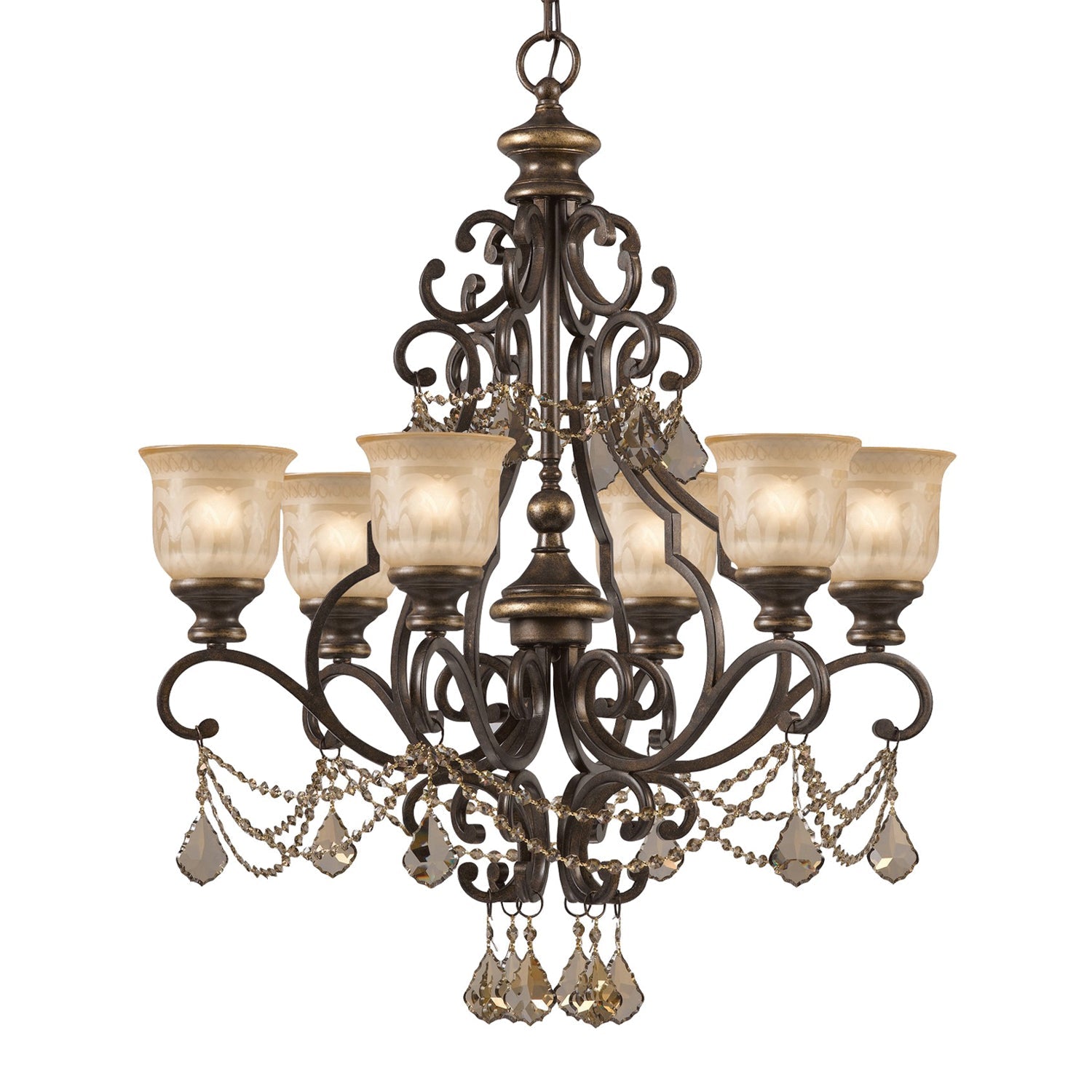 Norwalk 6 Light Golden Teak Hand Cut Crystal Bronze Umber Chandelier