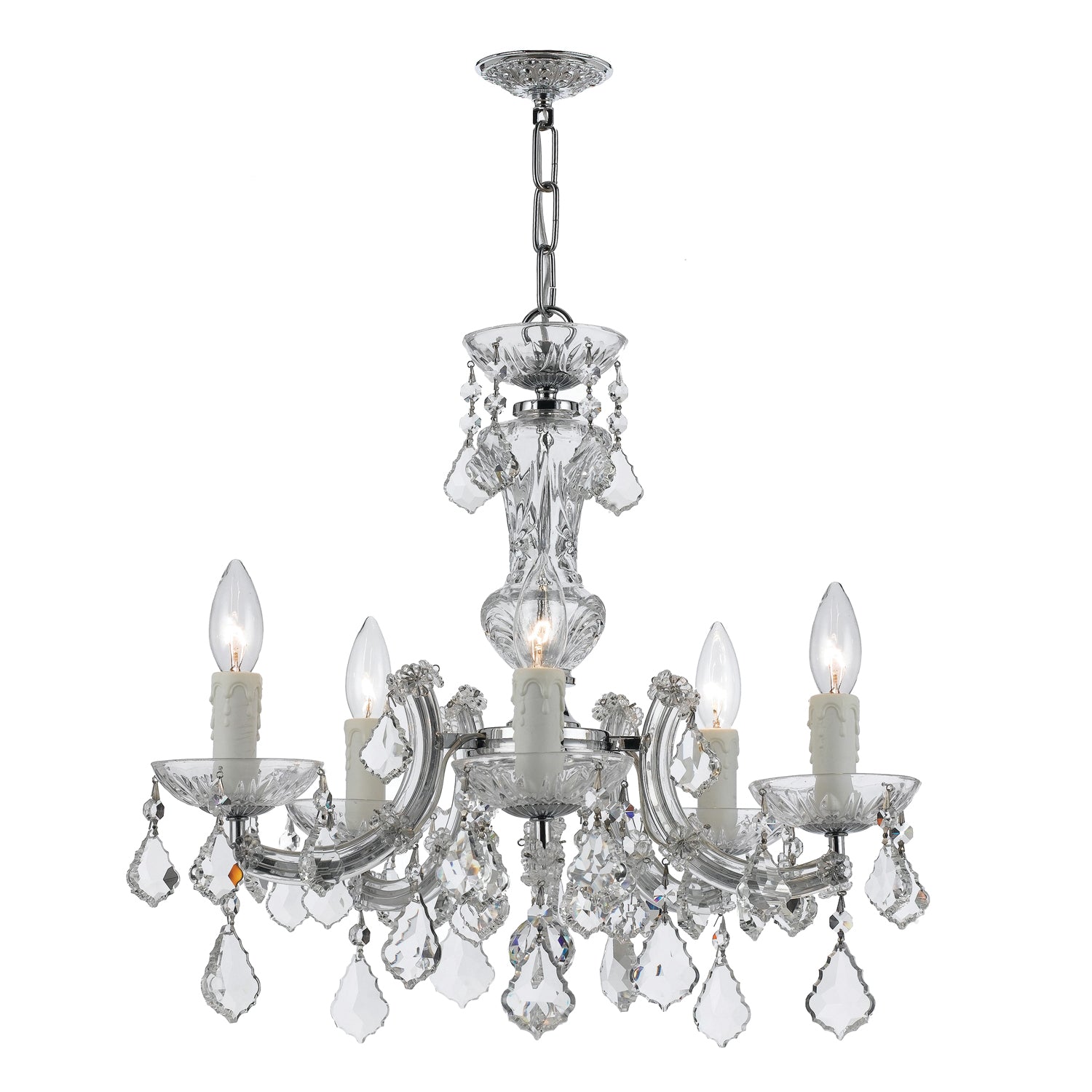 Draped in an abundance of crystal, the Maria Theresa collection is the epitome of high style. The fixture is stunning with glass arm frame decked with strands of faceted cut crystal. The fixture showcase opulence and decadence and is the perfect traditional accent to any space. Whether in a living room, or even closet or hallway, this fixture bring a luxurious addition to any decor.