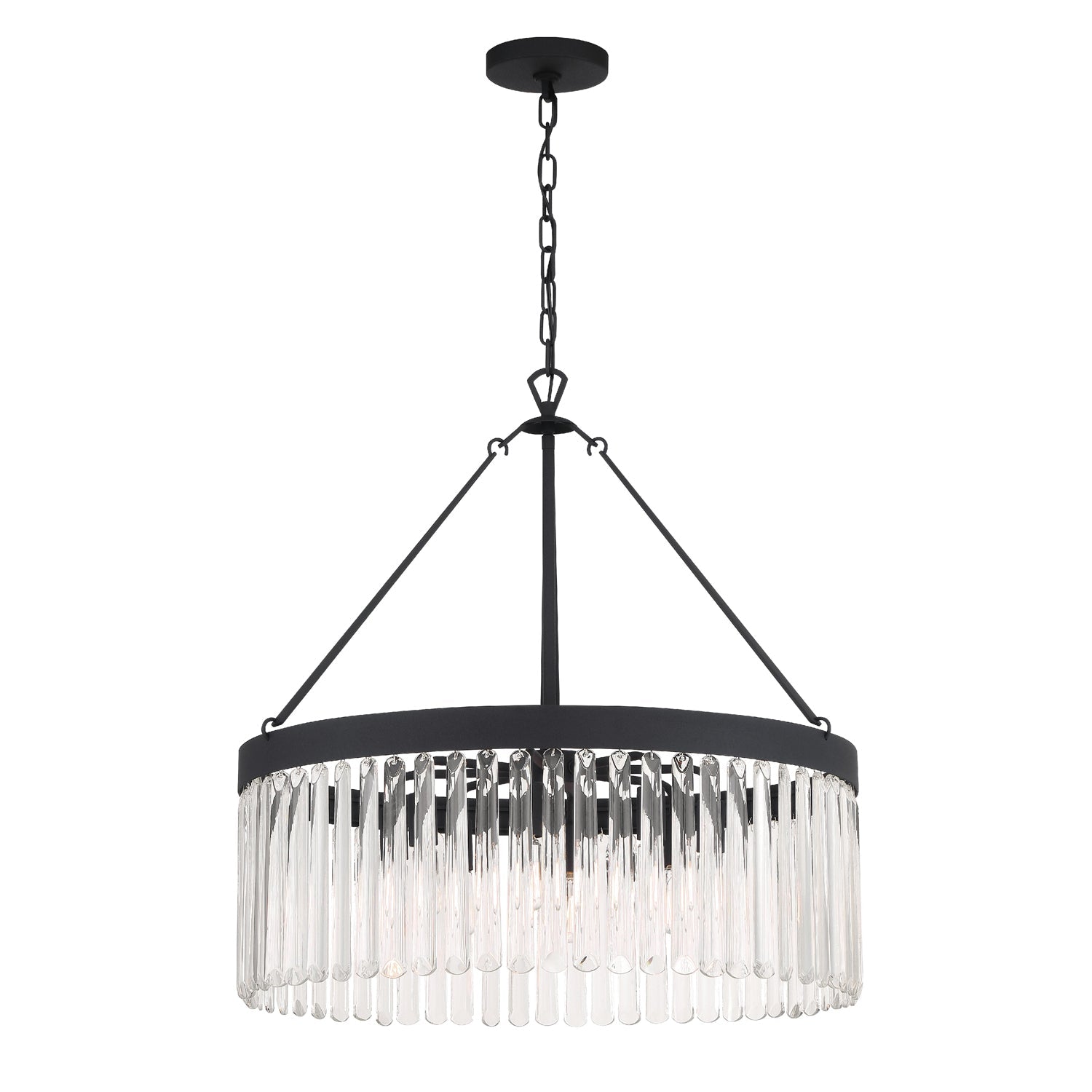 Art deco design is exemplified in the Emory collection. The collection features a row of smooth glass prisms hanging from a steel frame. Both the Black Forged and Modern Gold finishes, add all the sparkle and glamour you need in a fixture.