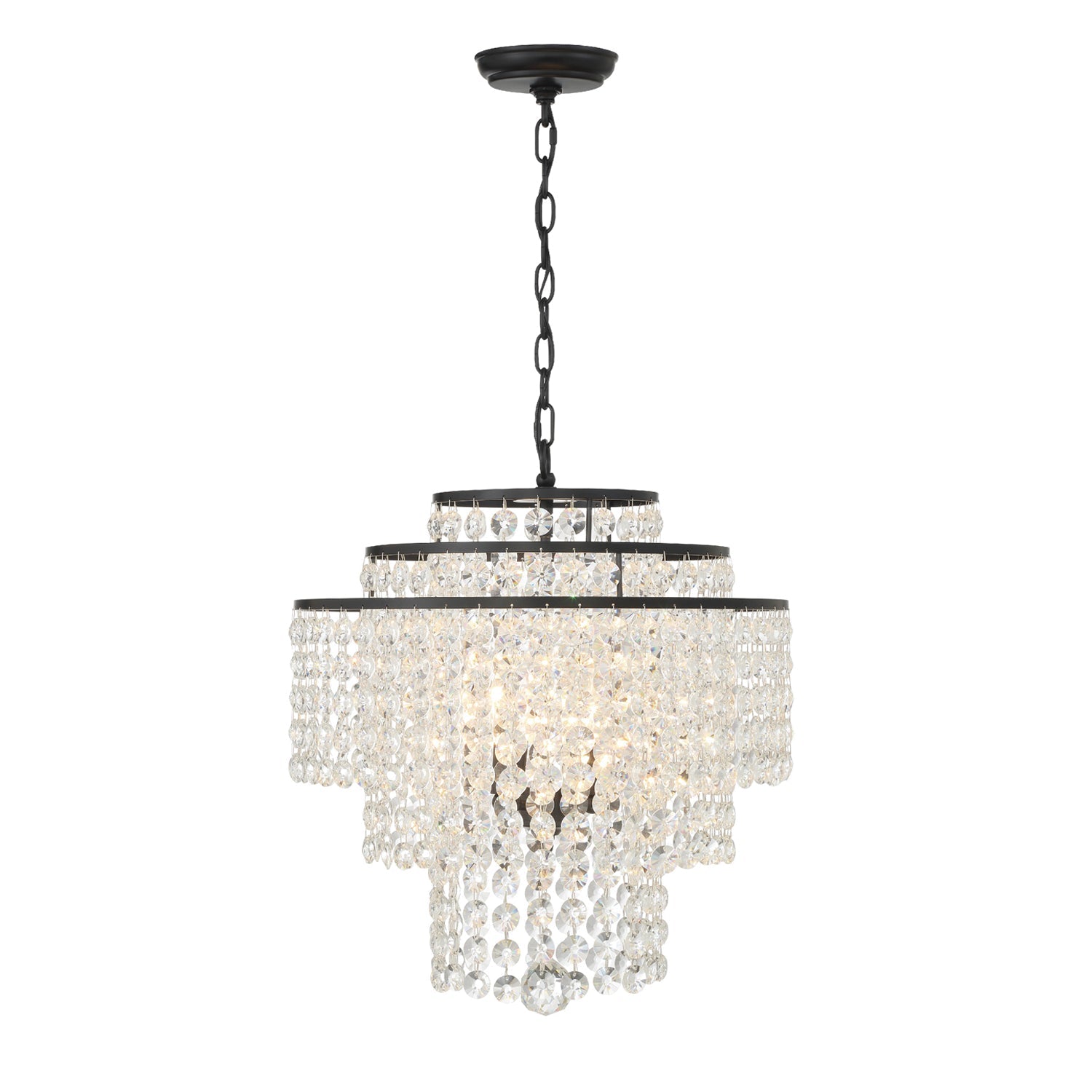 The beautiful Gabrielle silhouette is made of cascading faceted hand-cut crystal strands suspended from its delicate frame. The framework is crafted in wrought iron and available in antique gold, and matte black finishes. Elevate your living space and add character to a room with the Gabrielle collection.