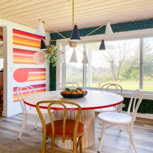 The Moxie Pendant Light by Mitzi is a striking addition to any modern space, featuring a stylish blend of black and white with a durable steel shade. Measuring 34.50 inches in diameter and 30.50 inches in height, this elegant fixture accommodates nine GU10 lamps, delivering a total wattage of 108W. With its UL Damp rating, this pendant is suitable for various indoor settings, particularly in areas with moisture. Available in a combination finish of aged brass, black, and white, it enhances both aesthetic and functionality.