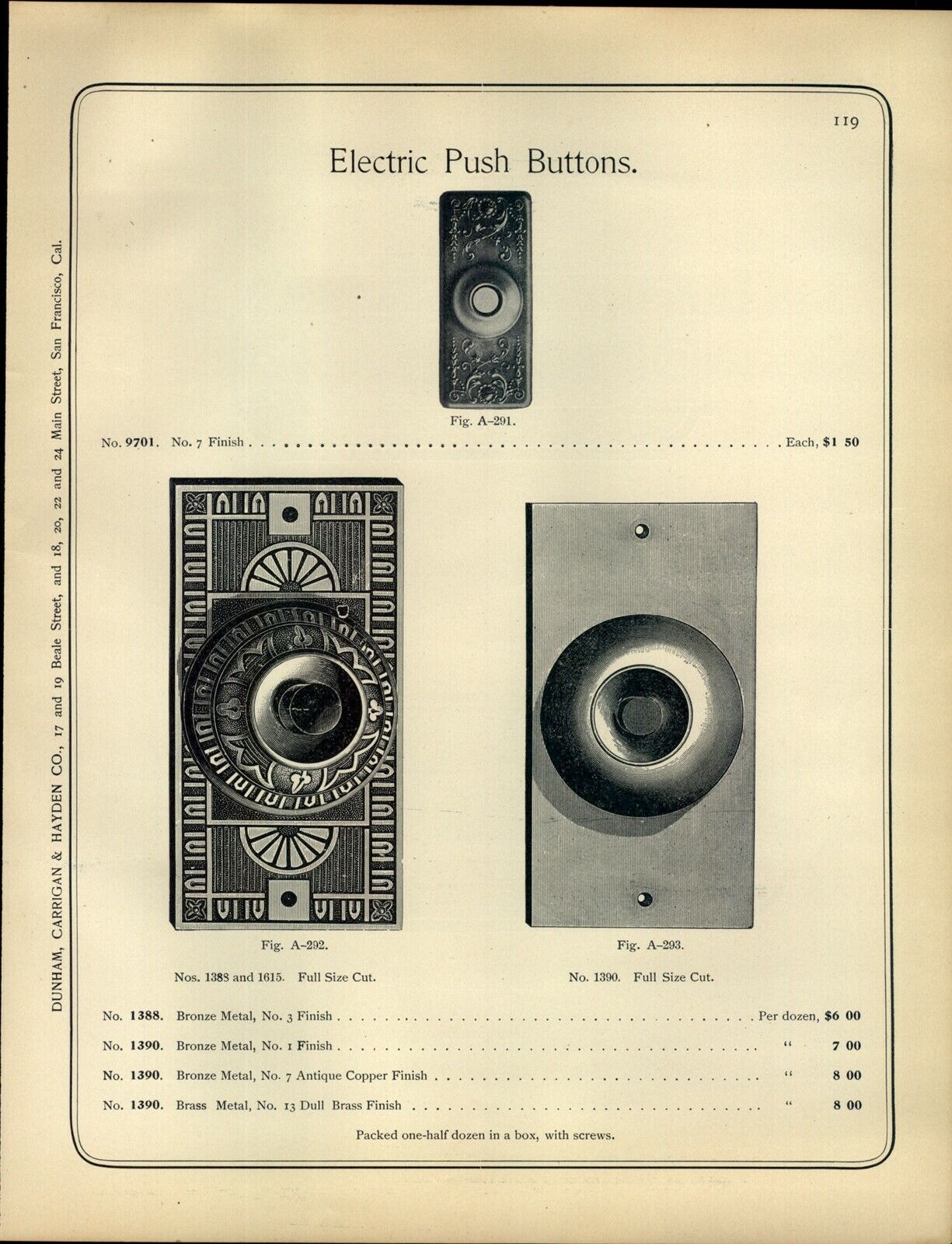This doorbell is made from solid brass for decades of service. Even the button is made from metal - and each item is hand cast and hand finished to maintain a high level of detail. This doorbell measures 2 3/8 Inches wide by 4 1/4 Inches tall with a projection of 1 inch. Several designer finishes are available including Polished Brass, Antique Brass, Black Bronze and Polished Chrome. Direct screw mount and connects on normal door bell voltage with two common wires. The average lead time for this particular product is 3 to 4 Business Days.