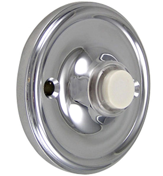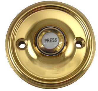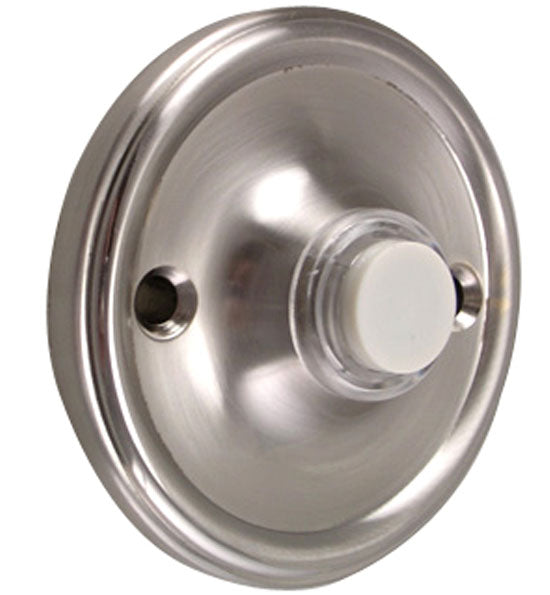 This doorbell measures 2 1/4 inches in diameter and connects easily with to contact screws. 24 Volt maximum (normal doorbell circuitry). Finishes available include Polished Brass, Black Bronze, Polished Chrome, and Satin Nickel. The average lead time for this particular product is 2 to 4 Business Days.