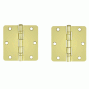This solid steel hinge from Deltana includes ball bearings and a polished brass finish. This hinge measures 3 1/2 inches tall by 3 1/2 inches wide with 1/4 radius corners. Comes complete with mounting hardware.