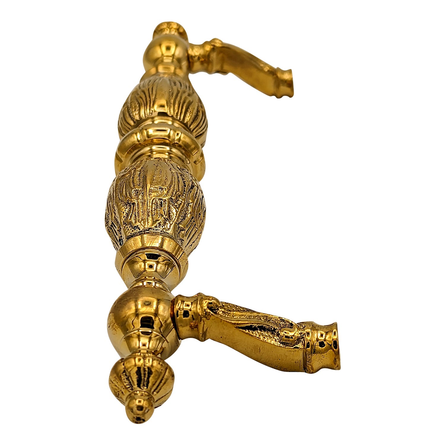 10 Inch Solid Brass Large Victorian Pull - Measures 10 inch long with a projection of 2 3/4 inch. Center to center mounting distance is 8 inch (8.00 c-c). Comes complete with mounting hardware. Available in several different finishes.