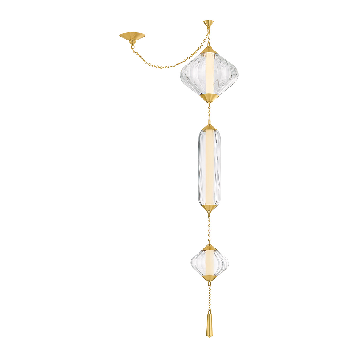 Fiorello’s gracious proportions magnify its impact. Combining geometric shapes, clear ribbed glass, and stylish metal counterweights, this installation-style piece is like jewelry for the home. The Vintage Patina Brass finish on the metalwork enriches the retro shapes, while the LED tubes feel fresh and contemporary. Fiorello is available as a 2-light sconce, a 3-light pendant, and a grand 9-light chandelier that stretches almost from floor to ceiling.