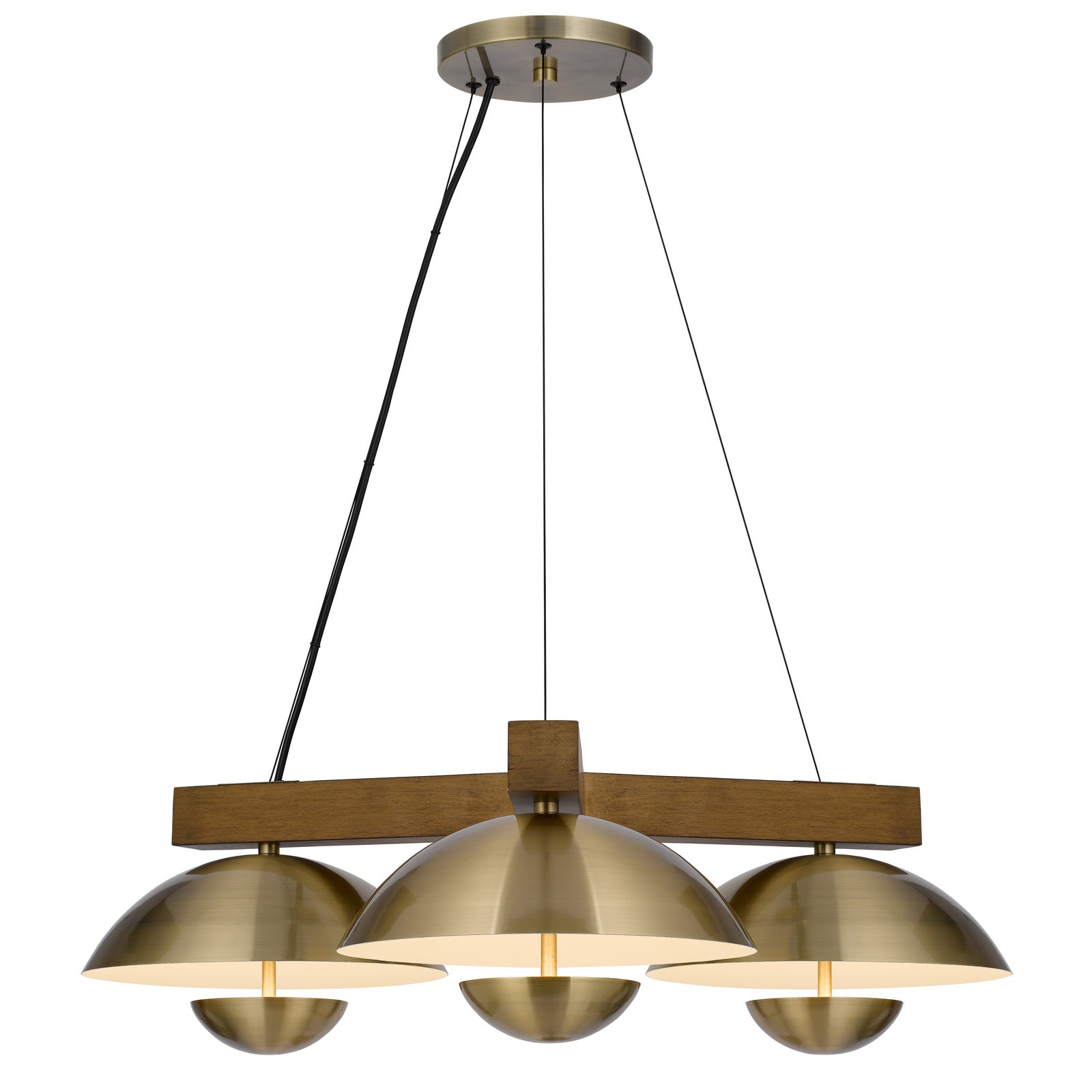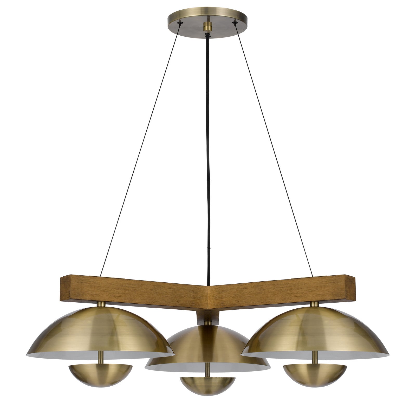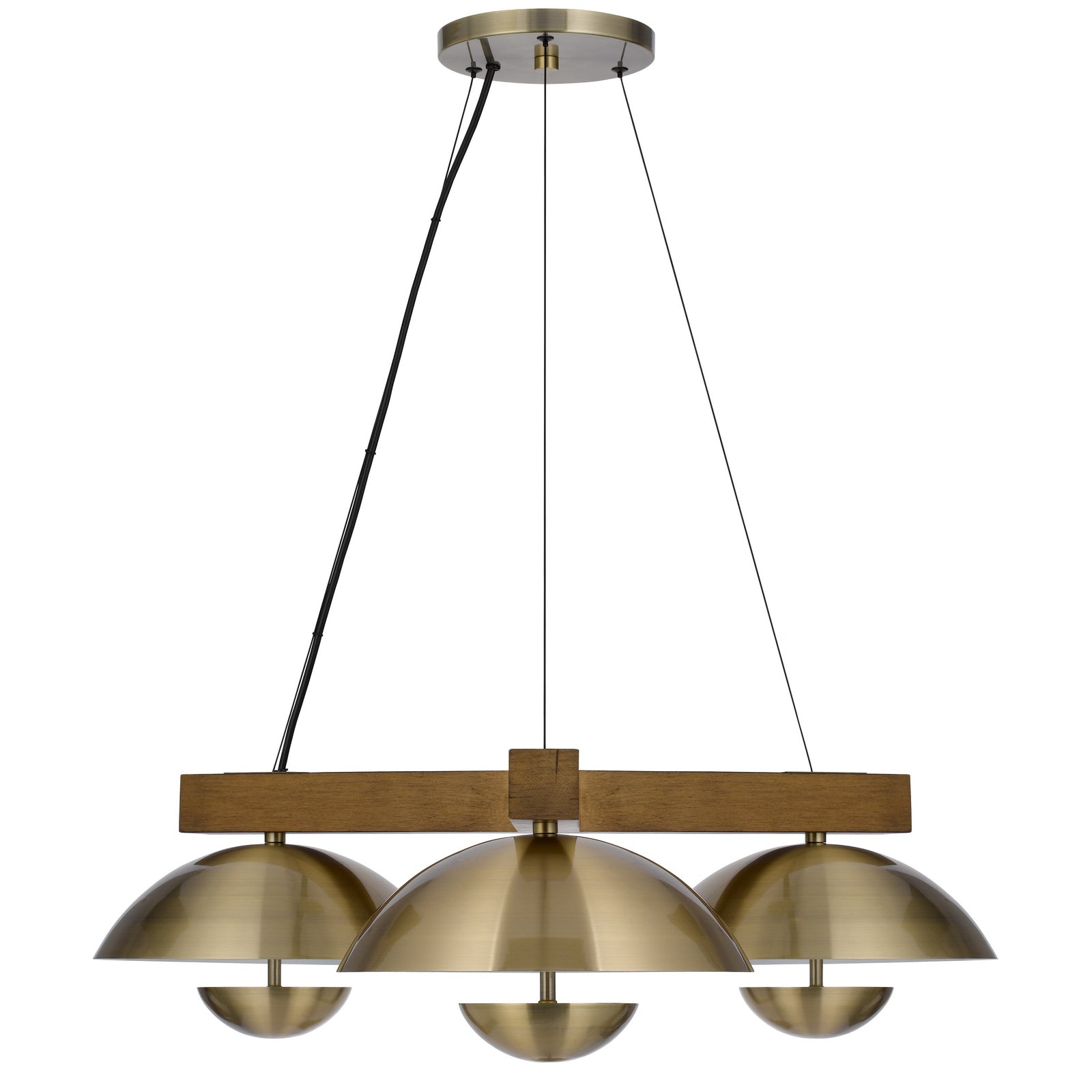 The Lakeland 15W x 3 Integrated Dimmable LED Pendant Light combines durability and modern design with its metal and birch wood construction. It features a half-domed metal shade and includes a canopy for easy installation. With an impressive 1000 lumens output and integrated LED lights, this energy-efficient fixture is ideal for kitchens or island areas. It is also dimmable, compatible with Lutron brand dimmers such as DVCL-153P and more, allowing you to adjust the ambiance to your preference. The chandelier ships in one carton and comes with a one-year warranty, ensuring it's free from defects in material and workmanship.