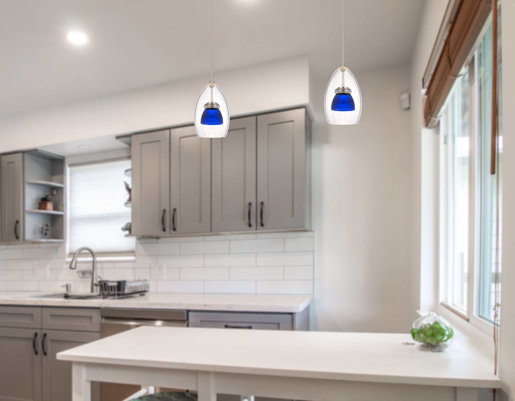 The UP-128-CL-BLUFR Integrated Dimmable LED Glass Mini Pendant Light is a stylish and functional lighting option, ideal for adding a vibrant touch to your space. With a wattage of 6W and an output of 450 lumens at a warm 3000K color temperature, this pendant light provides ample illumination while being energy-efficient. It features a durable construction with a double-shaded design, featuring a glass outer shade and a polycarbonate inner shade. This pendant light is compatible with Lutron brand dimmers for customizable brightness, and it includes a canopy and a replaceable driver. Backed by a three-year warranty, this fixture is perfect for those looking to enhance their decor with both design and practicality.