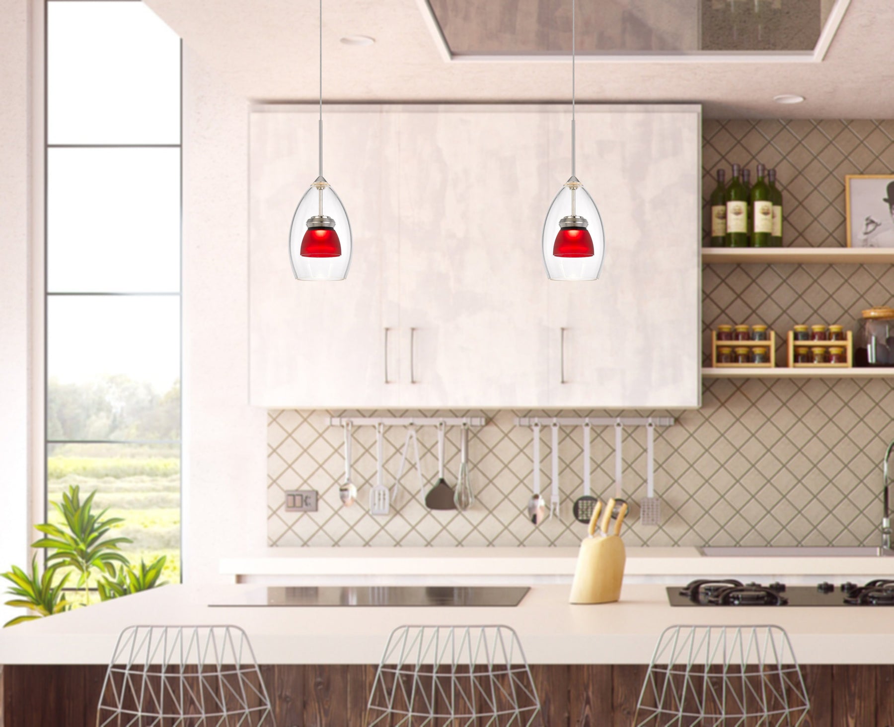 The Integrated Dimmable LED Glass Mini Pendant Light, Product No. UP-128-CL-REDFR, is a vibrant and stylish addition to any space. With a power output of 6W and a luminous brightness of 450 lumens at 3000K, it offers efficient lighting while enhancing your decor. Constructed from durable materials, this pendant features a unique double-shaded design with a glass outer shade and a polycarbonate inner shade. The fixture is compatible with various Lutron brand dimmers for adjustable brightness, making it perfect for creating the desired ambiance. It includes a canopy and a replaceable driver, ensuring easy installation and maintenance. With a warranty of three years, this pendant light is a reliable choice for both aesthetic appeal and lasting performance.