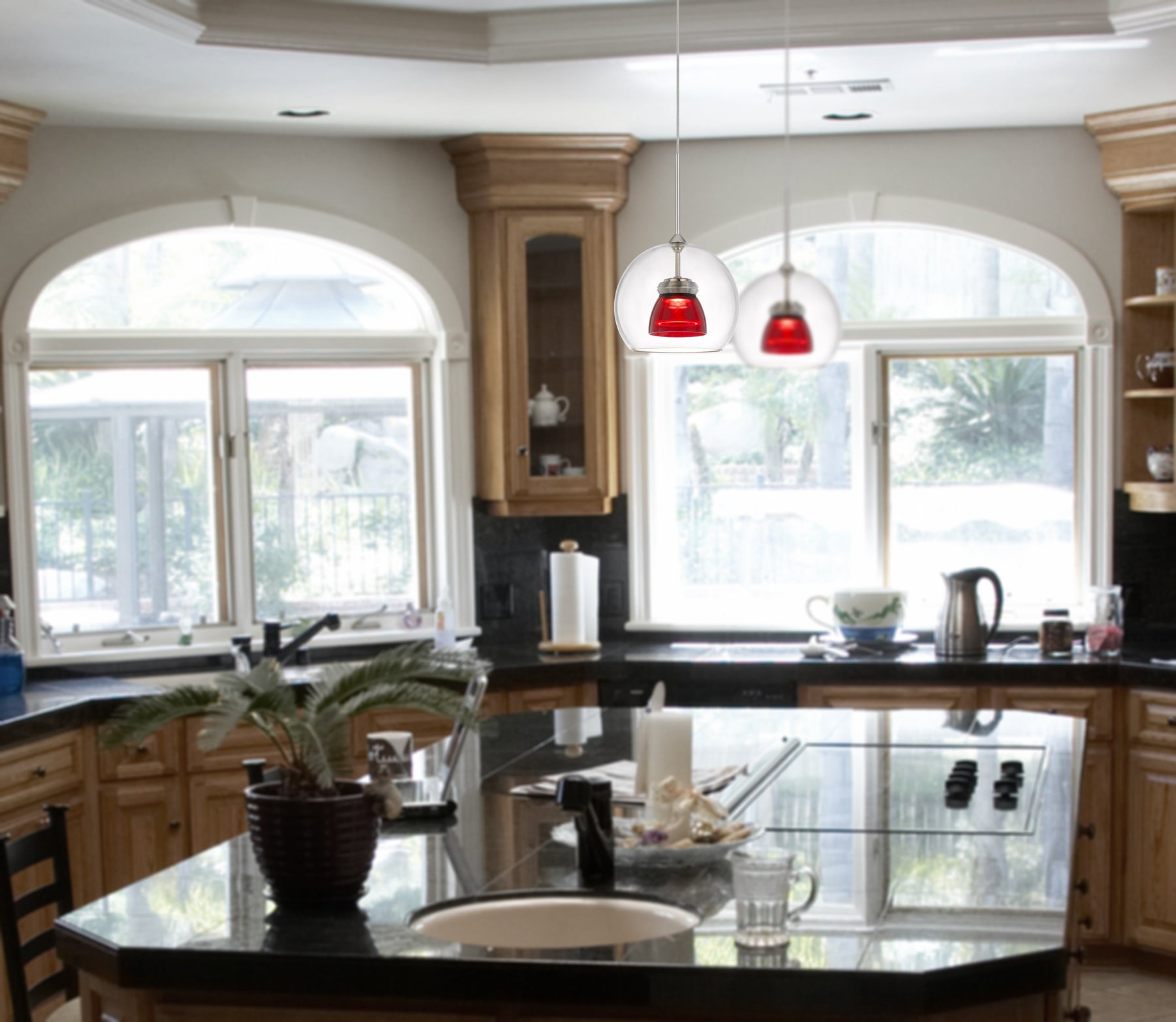 The UP-335-CL-REDCL Integrated Dimmable LED Glass Mini Pendant Light is a vibrant and modern lighting fixture that effortlessly enhances any decor. With a power consumption of 6W and a luminous output of 450 lumens at a warm 3000K, this pendant light provides both functionality and style. Constructed with durable materials, it features a unique double-shaded design, combining a glass outer shade with a polycarbonate inner shade for a layered lighting effect. The light is fully dimmable and compatible with Lutron brand dimmers, offering versatility in ambiance control. It comes with a canopy and a replaceable driver, ensuring ease of installation and maintenance. Backed by a three-year warranty, this pendant light is an excellent choice for adding a pop of color and elegance to your space.