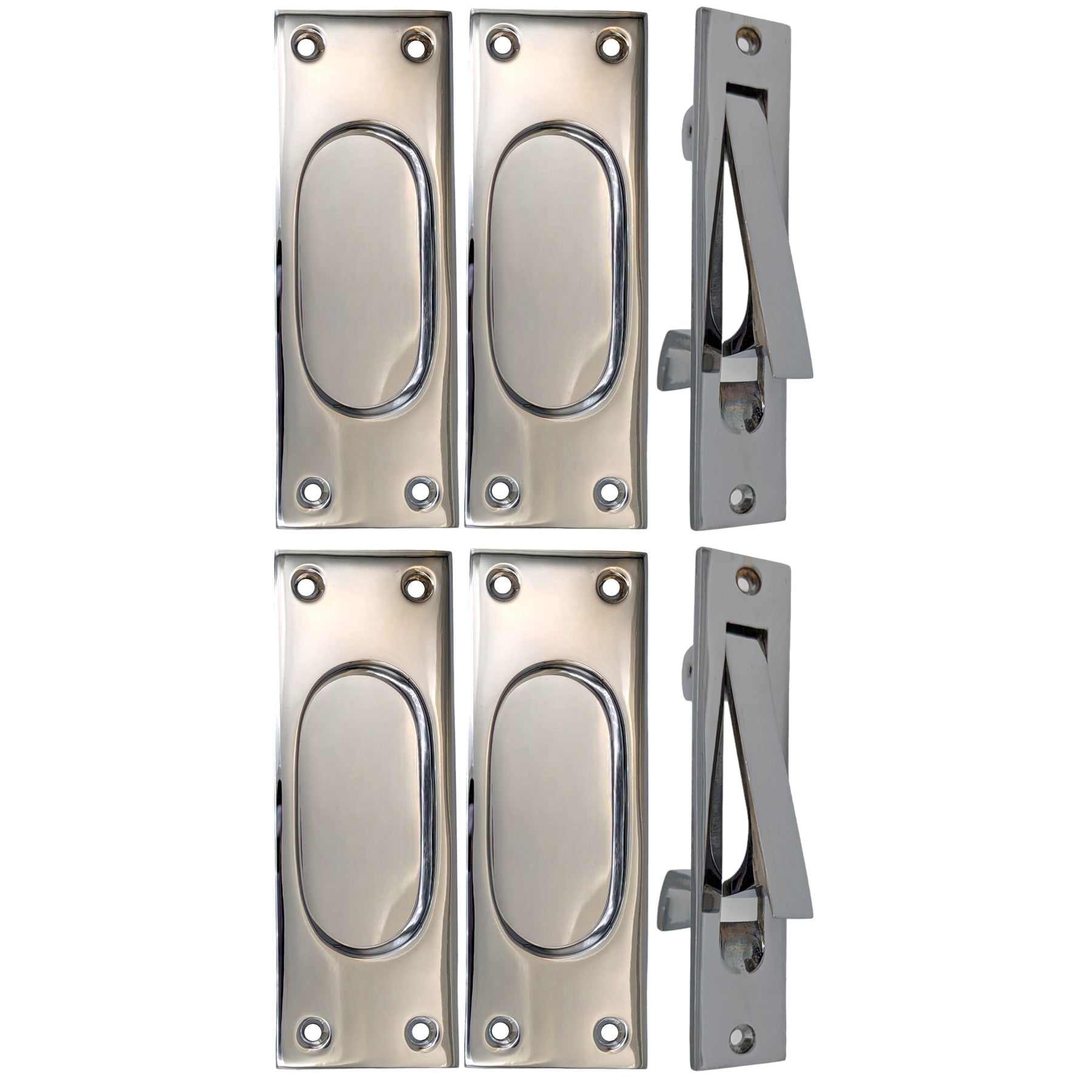 The flush pull measures approximately 5 inches tall by 1 2/5 inch wide and the edge pull measures approximately 5 inches tall by 1 inch wide. The set is crafted from solid brass, this hardware piece comes complete with complementary screws, ensuring easy installation with all the necessary mounting hardware included. For a flush finish, routing may be necessary.