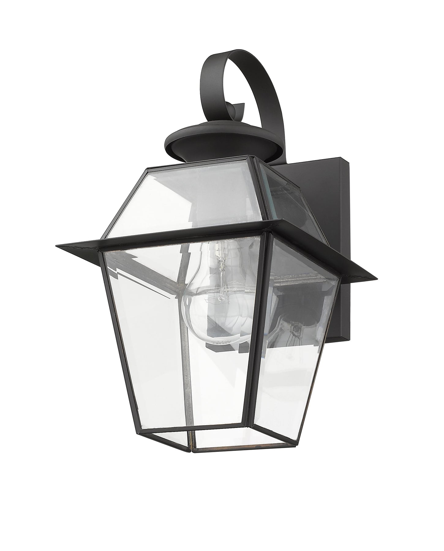The 2181-07 Westover Wall Lantern is a breathtaking addition for those who appreciate traditional elegance. Crafted from hand-finished solid brass, this fixture stands 12.5 inches tall and 7 inches wide, featuring a remarkable extension of 7.5 inches. Its single light is designed to accommodate a medium base bulb with a maximum wattage of 100W, offering a warm glow through clear beveled glass panes. The design is inspired by classic gas-burning lamps and is suitable for both damp and wet locations, making it ideal for outdoor environments. The rich bronze finish enhances its timeless appeal, reminiscent of antique gas lights often seen in charming Southern cities.