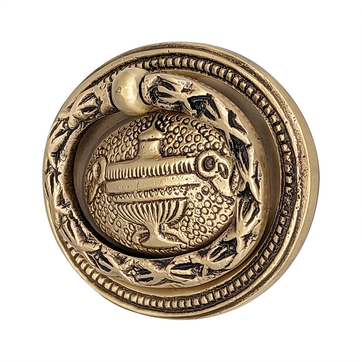 This ring pull measures 2 7/8 inches long and 2 1/8 inches tall. Comes complete with one rear mount machine screw. This oval bail pull is made in the Hepplewhite and Federal (Federalist) style and it is available in several finishes. Comes complete with mounting hardware.
