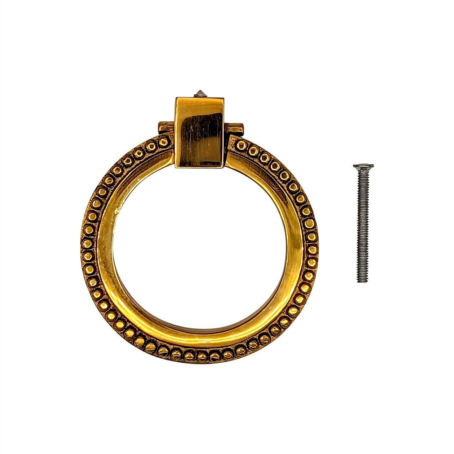Elevate your furniture with the 3-inch Solid Brass Beaded Drawer Ring Pull, a refined combination of classic charm and meticulous craftsmanship. With intricate beaded detailing, this drawer pull becomes an exquisite accent, seamlessly blending timeless design with sophistication. Transform your living spaces with this distinguished accessory, where the polished brass finish and attention to detail converge to create a statement piece that transcends trends.