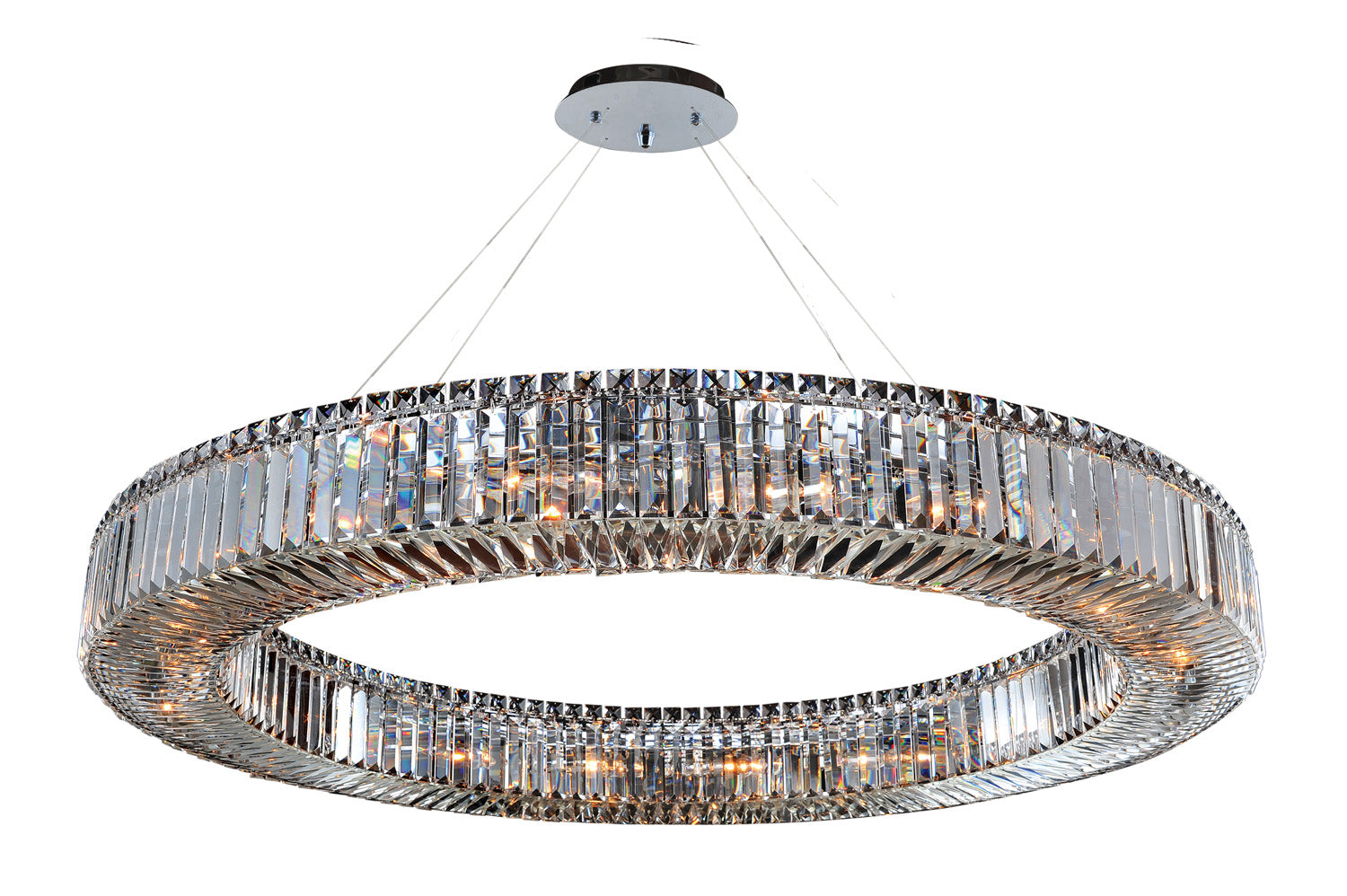 The Rondelle 47-Inch Pendant embodies modern classic design with its striking elegance and superior craftsmanship. Made from laser-cut stainless steel and finished in polished chrome, this stunning fixture effortlessly enhances any interior space. Designed to accommodate 18 E12 candelabra base bulbs (not included), each with a maximum wattage of 40W, it promises ample illumination while creating a captivating ambiance.