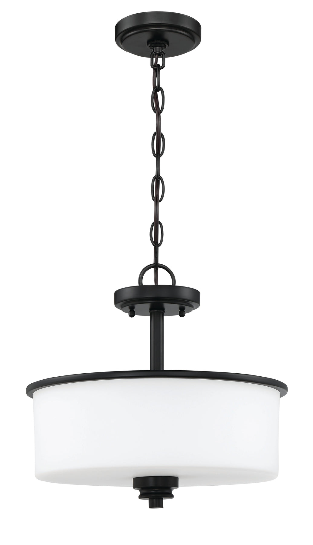 Bolden 2 Light Convertible Semi Flush in Flat Black (White Glass)