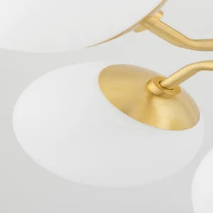 The Estee 6-Light Chandelier by Mitzi is a stunning addition to any space, featuring a sleek design with a 28.00-inch diameter and a height of 15.00 inches. Each of the six lamps uses a standard E26 medium base socket, accommodating A19 bulbs with a maximum wattage of 60W (bulbs not included). The chandelier's elegant white glass shade enhances its modern appeal, while the finish options in Aged Brass and Polished Nickel allow for versatility in complementary décor. With a UL Damp rating, this fixture is suitable for various settings, adding a touch of sophistication to your home.