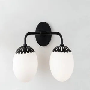 The Paige Wall Sconce by Mitzi is a stunning addition to any space, featuring a sleek design with a 15.00-inch width and a 10.50-inch height. This elegant fixture is designed to hold two E26 medium base bulbs (not included), each with a maximum wattage of 60W, ensuring ample illumination. The glass shade in a chic white color harmonizes beautifully with the aged brass, old bronze, or polished nickel finish options, adding a touch of sophistication. With a 7.00-inch extension and a top-to-center height of 2.25 inches, the Paige is perfect for both decorative and functional lighting. It is also UL Damp rated, making it suitable for use in humid areas.