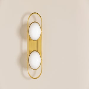 The Amy Wall Sconce by Mitzi is a sophisticated lighting fixture that combines style and functionality. It features two G9 sockets, accommodating G9 LED bulbs with a wattage of 6.00 each (bulbs not included). With a width of 16.00 inches, a height of 5.50 inches, and an extension of 5.25 inches, this sconce is designed for versatile placement in any room. The elegant glass shade enhances its aesthetic appeal, available in a choice of Aged Brass (AGB) or Polished Nickel (PN) finishes. ETL Damp rated, the Amy is suitable for use in humid environments, making it ideal for bathrooms or other moisture-prone areas.