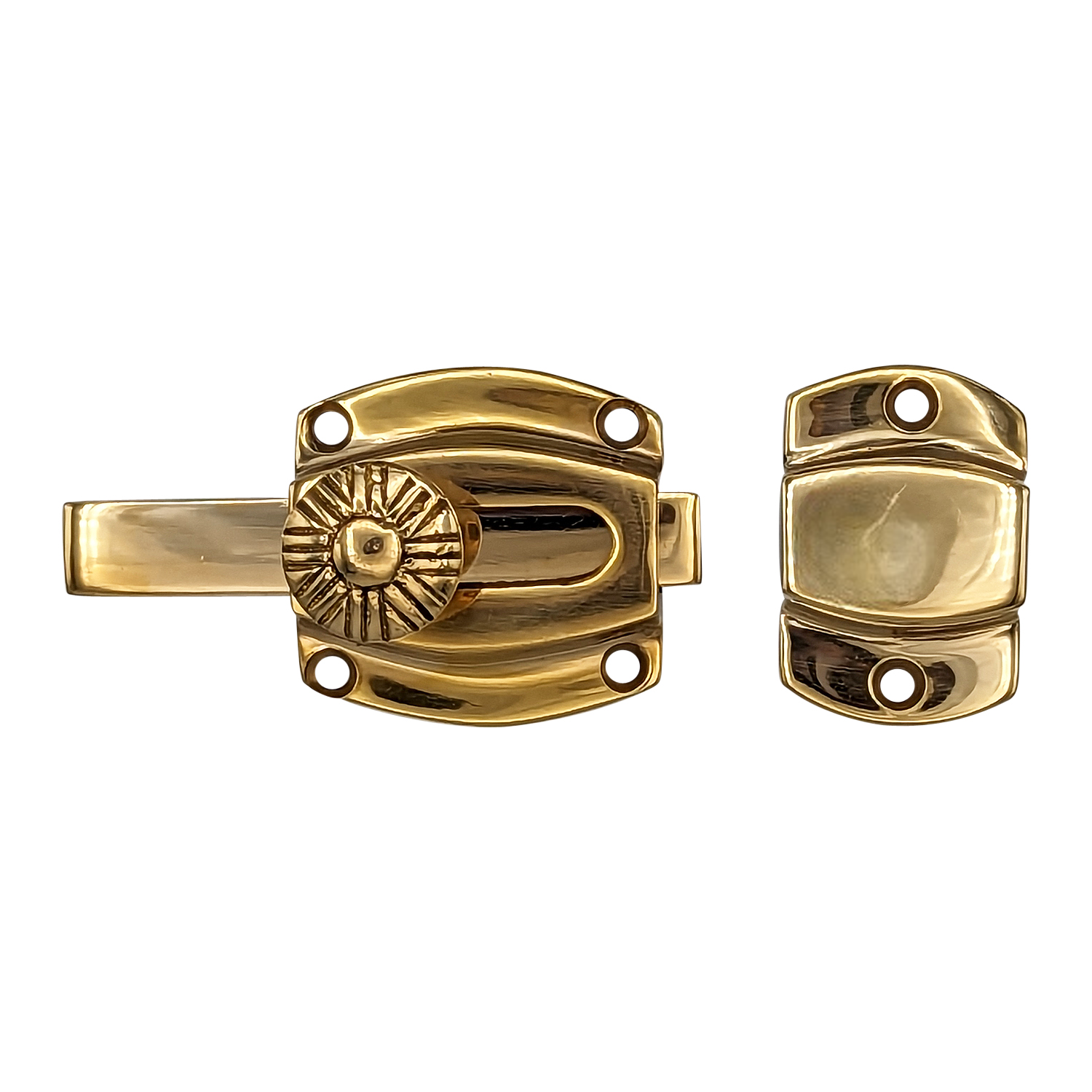 This latch features a meticulously detailed knob, adding a touch of elegance to its overall simplicity. Crafted from solid brass, it not only ensures durability but also exudes a classic charm that withstands the test of time. The combination of a detailed knob and a straightforward design makes this latch a perfect choice for those seeking both refinement and simplicity. Upgrade your cabinets with this enduring piece that effortlessly blends timeless design with quality craftsmanship.