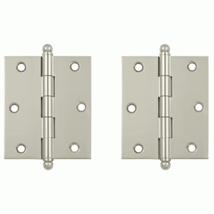3 Inch x 2 1/2 Inch Solid Brass Cabinet Hinge (Polished Nickel Finish) - This hinge measures 3 inches tall by 2 1/2 inches wide and comes standard with a ball tip. The hinge also comes complete with the mounting hardware.