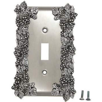 Grapes & Floral Wall Plate (Bright Nickel Finish) - single pole design (available in 12 other configurations). Hand finished in the USA. Comes complete with mounting hardware.