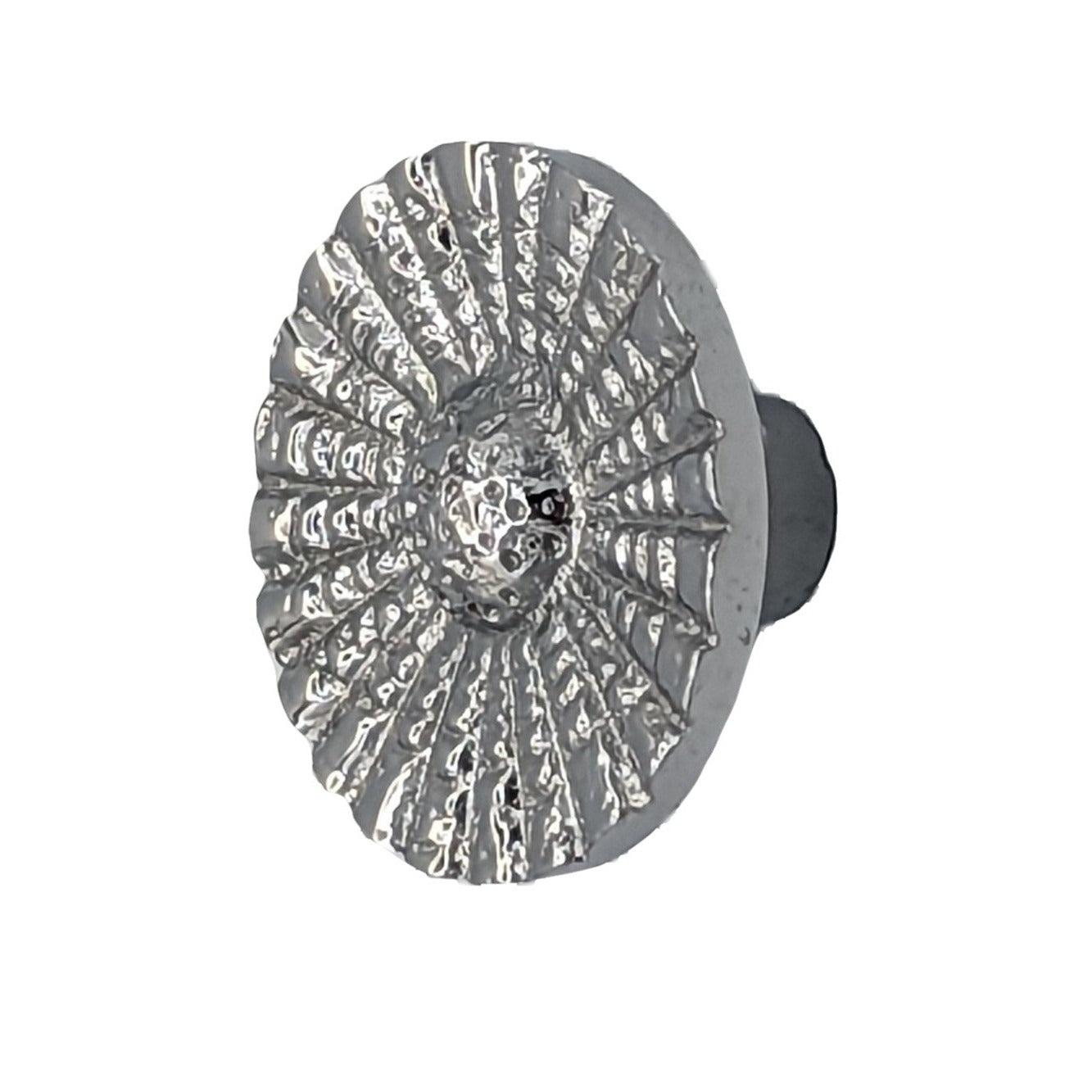 Measures 1 inch in diameter with a projection of 2/3 inch. Comes complete with mounting hardware. This product comes as an unlacquered natural brass and it will patina over time. A high strength lacquer coating is available upon request.
