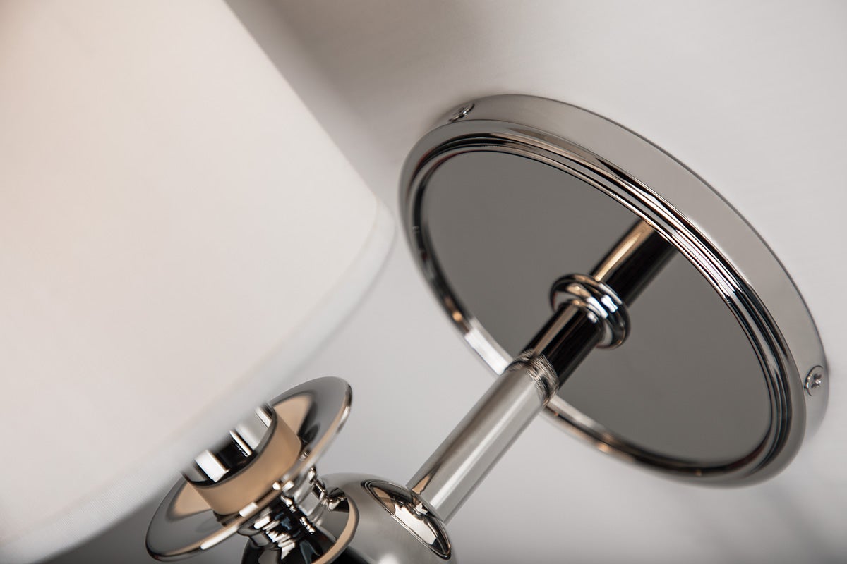 The Gordon Wall Sconce by Hudson Valley Lighting features a sleek and sophisticated design, perfect for enhancing any space. With a width of 5.00 inches and a height of 22.25 inches, this fixture provides a striking presence. It requires one E12 candelabra base bulb (not included) with a maximum wattage of 60W. The elegant silk shade in white adds a touch of luxury and diffuses light beautifully. Designed for versatility, it is available in two stunning finishes: Aged Brass and Polished Nickel. Additionally, it boasts a UL Damp rating, making it suitable for humid areas such as bathrooms.