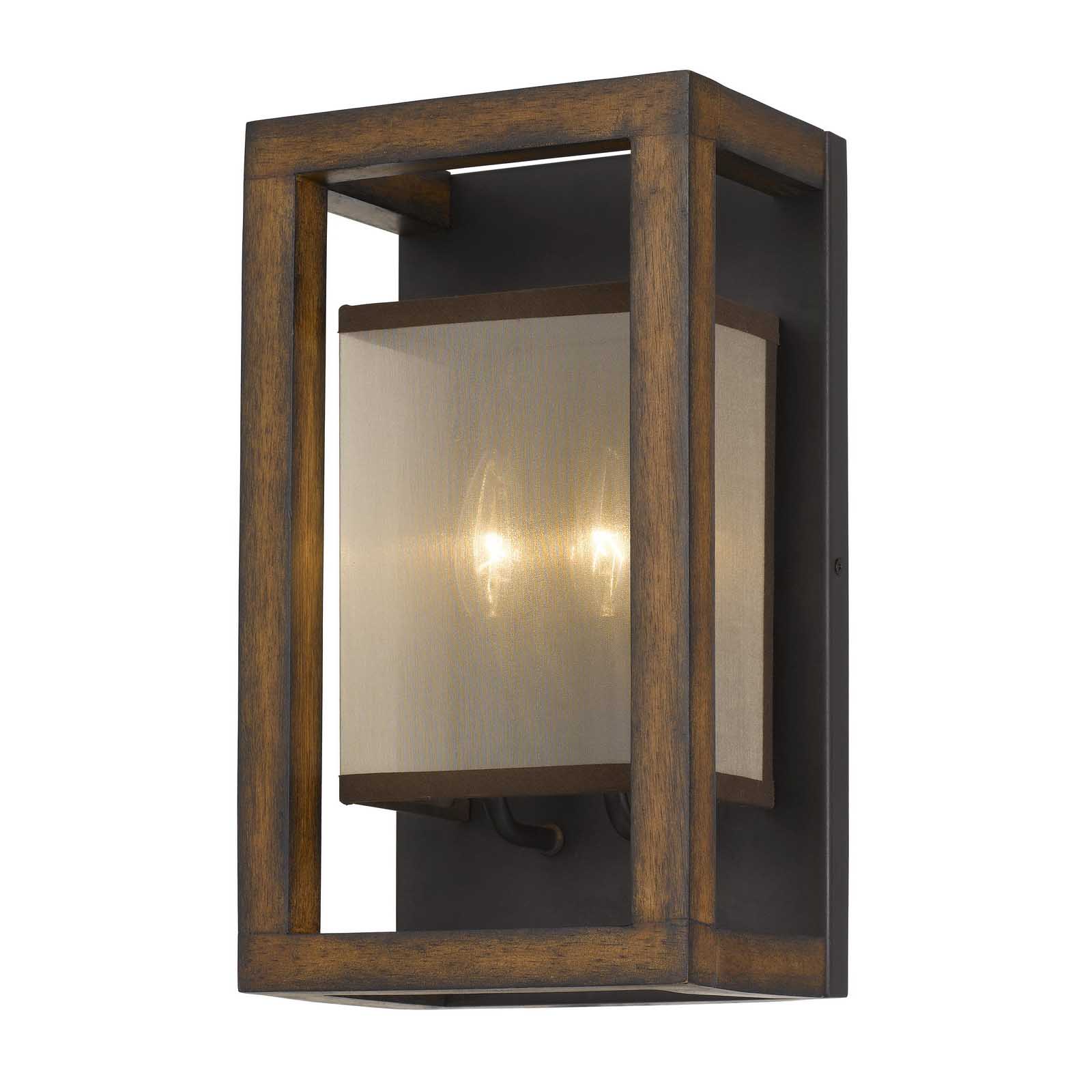 40W X 2 RUBBER WOOD WALL SCONCE WITH ORGANZA SHADE (EDISON BULBS NOT INCLUDED)