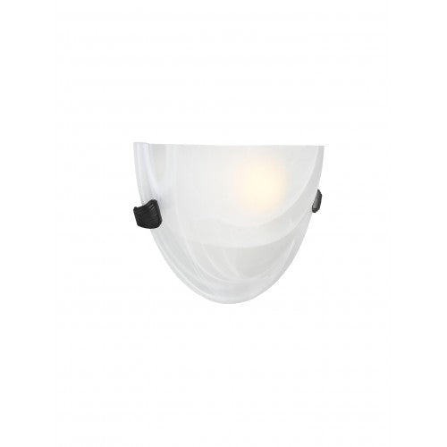 The 4271-07 Oasis Wall Sconce is a contemporary lighting fixture that combines elegance with functionality. Measuring 12 inches in width and 6 inches in height, this bronze-finished sconce features a distinctive bowed profile and contour lines, making it a perfect addition to bathrooms or staircases. Designed to accommodate one medium base bulb with a maximum wattage of 60W (not included), it utilizes white alabaster glass for a gentle, diffused light. This wall sconce is suitable for damp locations, ensuring versatility in various settings.